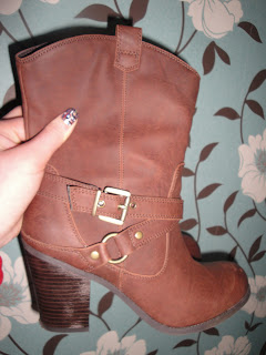 So anyway, since I can’t get nice shoes anywhere but Brantanos and Evans due to my size 8/9 wide, high-arched feet (ugh!) we had to trek to Cowley to Brantanos. Luckily there is a Matalan and TK Maxx right next door 🙂 My intention was to get some dolly shoes, and, OMG, there were literally about 20 pairs in my size! I practically cried with happiness, I NEVER get choice in shoes. And to make the day even better, I fell in love with a pair of the most gorgeous boots. Since my old boots died a painful death (by rabbit), I managed to persuade my mum that I was worthy of some new boots. I tried them on, size 9 right? THEY WERE TOO BIG. I swear it must have been the most happy shoe shopping experience of my entire LIFE, I downsized to an 8 and they fitted me very comfortably, WITH SOCKS. I thought I must be dreaming, lol. So off my happy self went with my means of payment (mum – sorry!) to the checkout. So good!